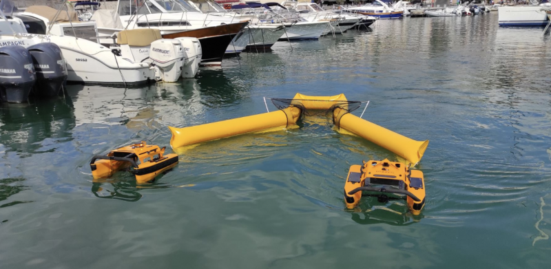 Clin d’oeil : un petit robot ramasse les déchets flottants dans le port de Marseille et du Havre grâce à la 5G d’Orange