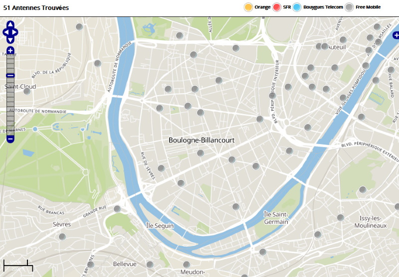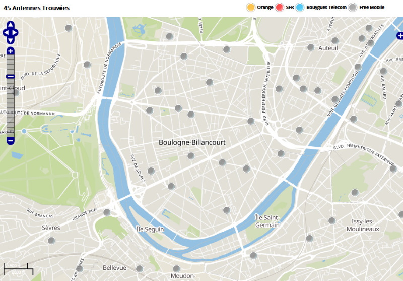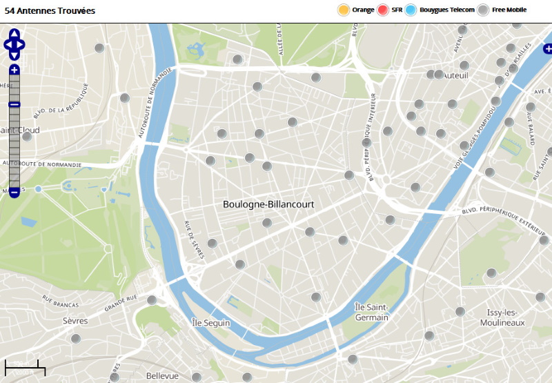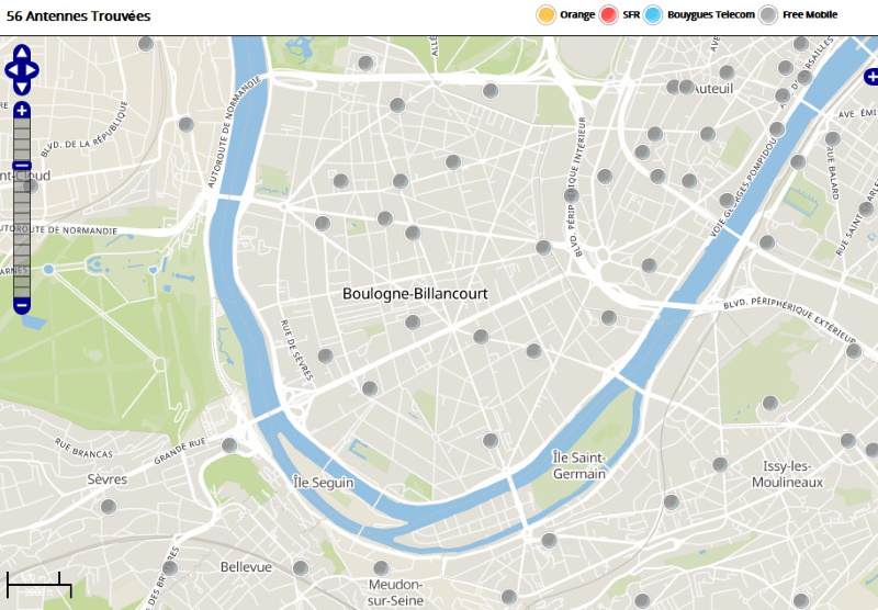 Découvrez la répartition des antennes mobiles Free 3G/4G sur Boulogne-Billancourt dans les Hauts-de-Seine