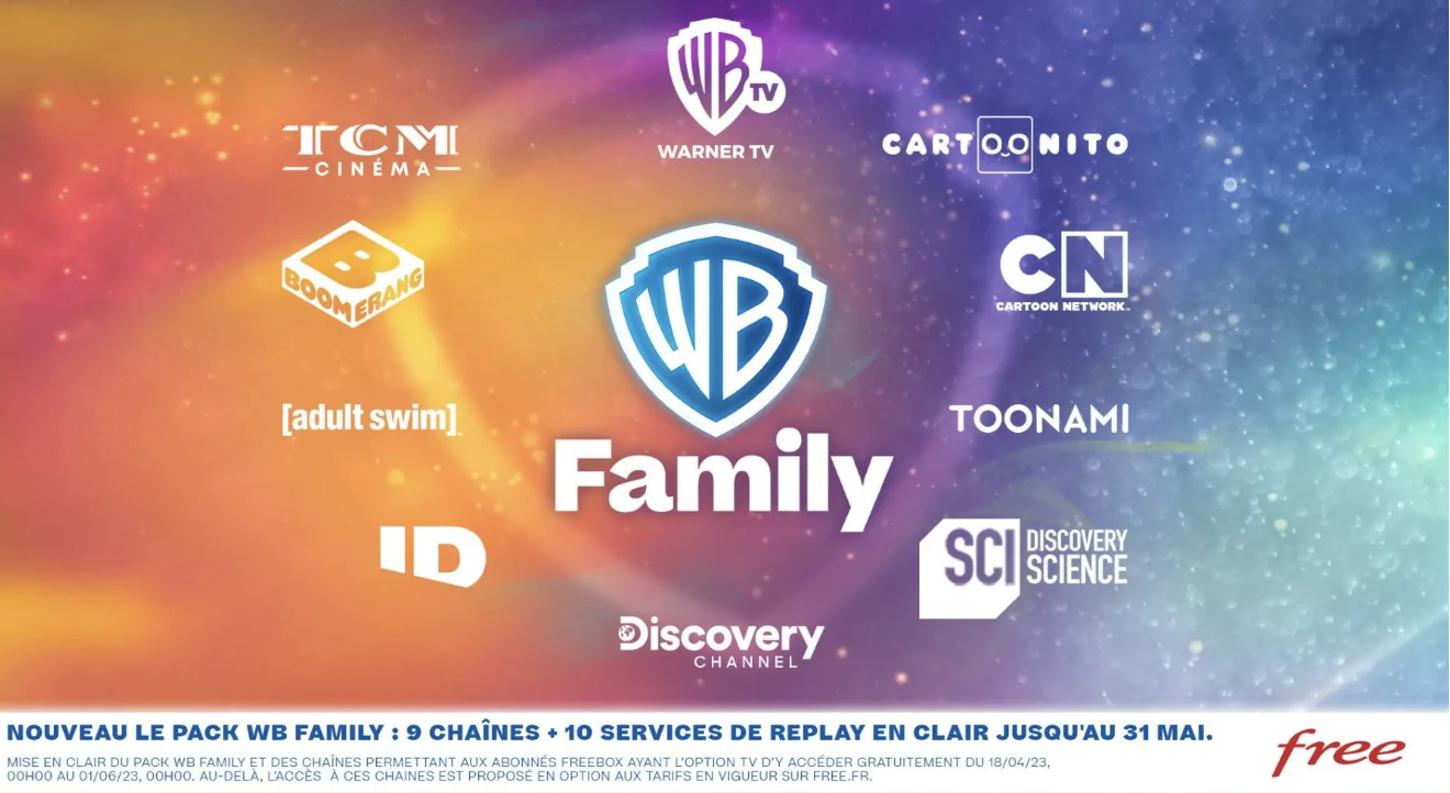 “Le WB Family Pack est généreusement offert aux abonnés Freebox sans frais supplémentaires jusqu’au 31 mai 2023”, a annoncé cette semaine Free, à la fois sur Twitter mais aussi sur son portail web. Lancé le 18 avril dernier, ce Pack est à présent au complet. S’il intégrait les chaînes Warner TV, Discovery Investigation, Discovery Channel, Toonami, TCM Cinéma, Cartoonito (ex-Boing), Cartoon Network, et Boomerang+1, celui-ci a été enrichi il y a quelques jours avec l’ajout des replays de ces 9 chaînes mais aussi du service de rattrapage d’Adult Swim.