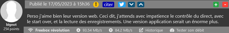 Lancée en février dernier, la version disponible sur Google Chrome, Safari, Mozilla et Edge d’Oqee continue de s’améliorer. Après l’intégration d’Oqee Ciné à la fin du mois d’avril, l’opérateur a apporté la semaine dernière plusieurs changements sur ce support. Il est désormais possible de naviguer dans votre contenu en replay grâce au clavier de votre ordinateur et ainsi de faire avancer de quelques secondes rapidement le programme grâce aux flèches directionnelles. De plus, les développeurs ont ajouté la sauvegarde de la position du scroll après avoir fait retour, ce qui permet, une fois votre programme quitté, de retourner à l’exact endroit où vous étiez lors de vos recherches. Deux nouveautés bienvenues, mais qui ont engendré de nombreuses suggestions d’améliorations “plus urgentes” au goût de certains Freenautes. Il faut parfois se rappeler un vieil adage et prendre son mal en patience.