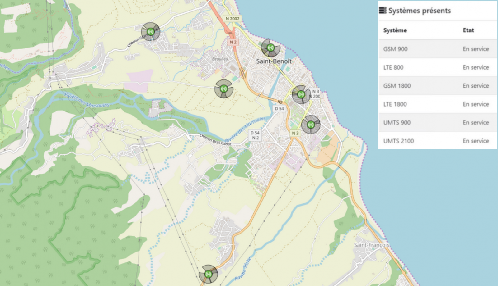Découvrez la répartition des antennes Free Réunion 3G/4G à Saint Benoît