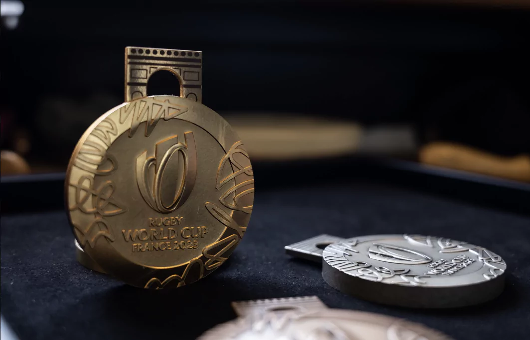 À 100 jours du match d’ouverture entre la France et la Nouvelle-Zélande, les médailles de la Coupe du Monde de Rugby 2023 ont été officiellement dévoilées à la Monnaie de Paris, là où elles ont été dessinées, gravées et frappées. Grâce à Orange, sponsor officiel de l’événement, plus de 200 000 téléphones ont pu être collectés et recyclés pour permettre leur confection.
