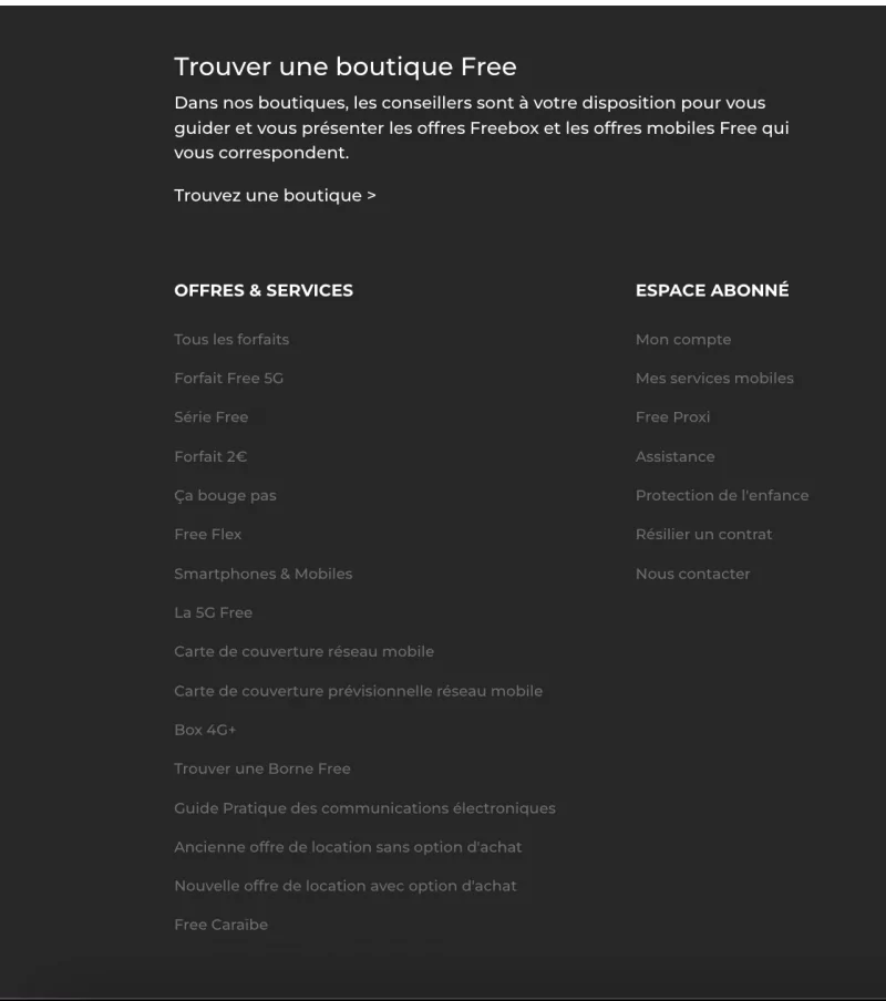 Il n’est désormais plus nécessaire de contacter le 3244, choix “Informations sur la résiliation de votre abonnement” et d’adresser sa demande de résiliation par courrier recommandé avec accusé de réception à l’adresse indiquée. Il faut à présent se rendre avant toute chose sur le site de Free Mobile, et scroller en bas de la page dans la rubrique Espace Abonné, avant de cliquer sur “Résilier un contrat”.