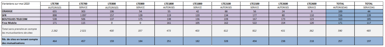 Du côté de cette génération de téléphonie mobile plus ancienne, Free continue son déploiement à un rythme plutôt lent avec 117 nouvelles activations sur le mois de mai.