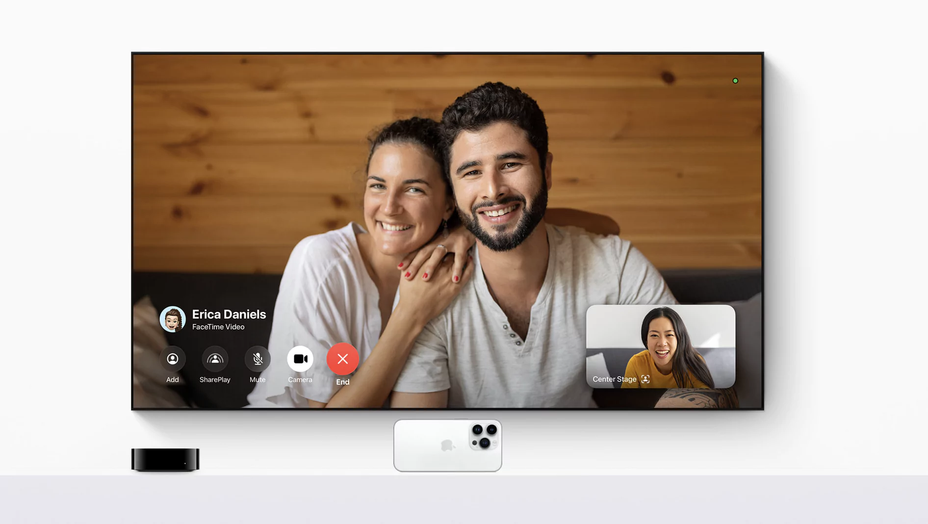 Pour la première fous FaceTime sera intégré et permettra ainsi aux utilisateurs de participer à des conversations plus immersives avec leurs proches, directement sur leur téléviseur. Le logiciel apporte aussi un nouveau Centre de contrôle avec l’état du système, y compris l’heure et le profil en cours d’utilisation, ainsi que des informations utiles sur l’activité de l’utilisateur.