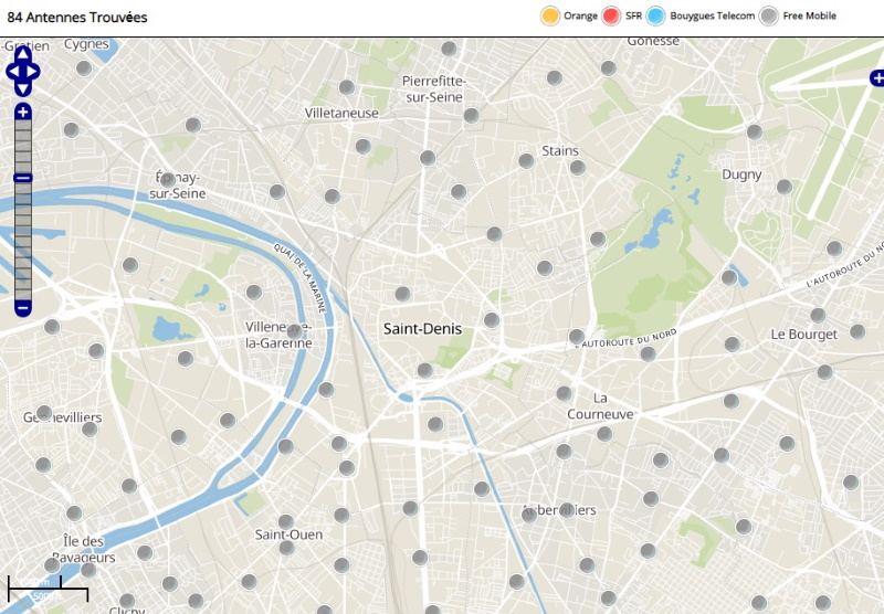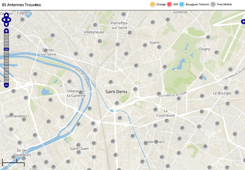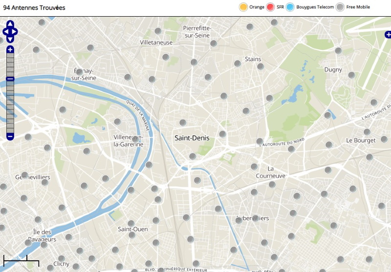Découvrez la répartition des antennes mobiles Free 3G/4G sur Saint-Denis en Seine-Saint-Denis