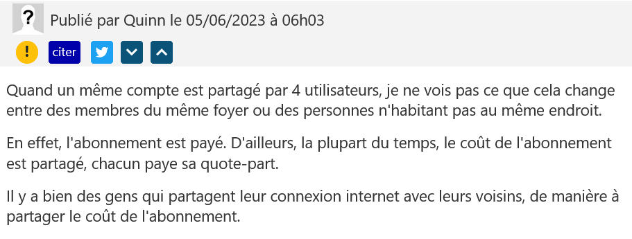 Alors que Netflix a lancé à travers de nombreux pays sa politique de lutte contre le partage de comptes, il précise cependant que pour l’heure aucune sanction n’est prévue pour ceux continuant à prêter leurs codes à des proches. Une politique assez permissive donc, mais qui ne résout pas le noeud du problème pour certains : payer pour faire partager un compte reste assez critiqué…