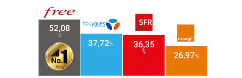 Cette différence s’explique par la différence de stratégie de déploiement de tous les opérateurs. Orange se concentre en effet sur l’activation de sites utilisant les fréquences 3.5 GHz, qui permettent justement d’accéder à un débit plus élevé. Si Free est bien plus bas, c’est parce qu’il cherche à proposer une couverture très étendue grâce aux fréquences 700 MHz, qui permettent moins de débit mais une meilleure pénétration dans les bâtiments et une couverture plus étendue, en plus du déploiement de la 3.5Ghz qui est moins importants que ses concurrents. SFR et Bouygues Telecom utilisent pour leur part les fréquences 2100 MHz en complément de la 3.5 GHz, permettant elles-aussi un débit plus rapide.
