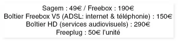 Le prix des autres équipements ne changent pas (Boitier HD 290€, Freebox ADSL 150€….).