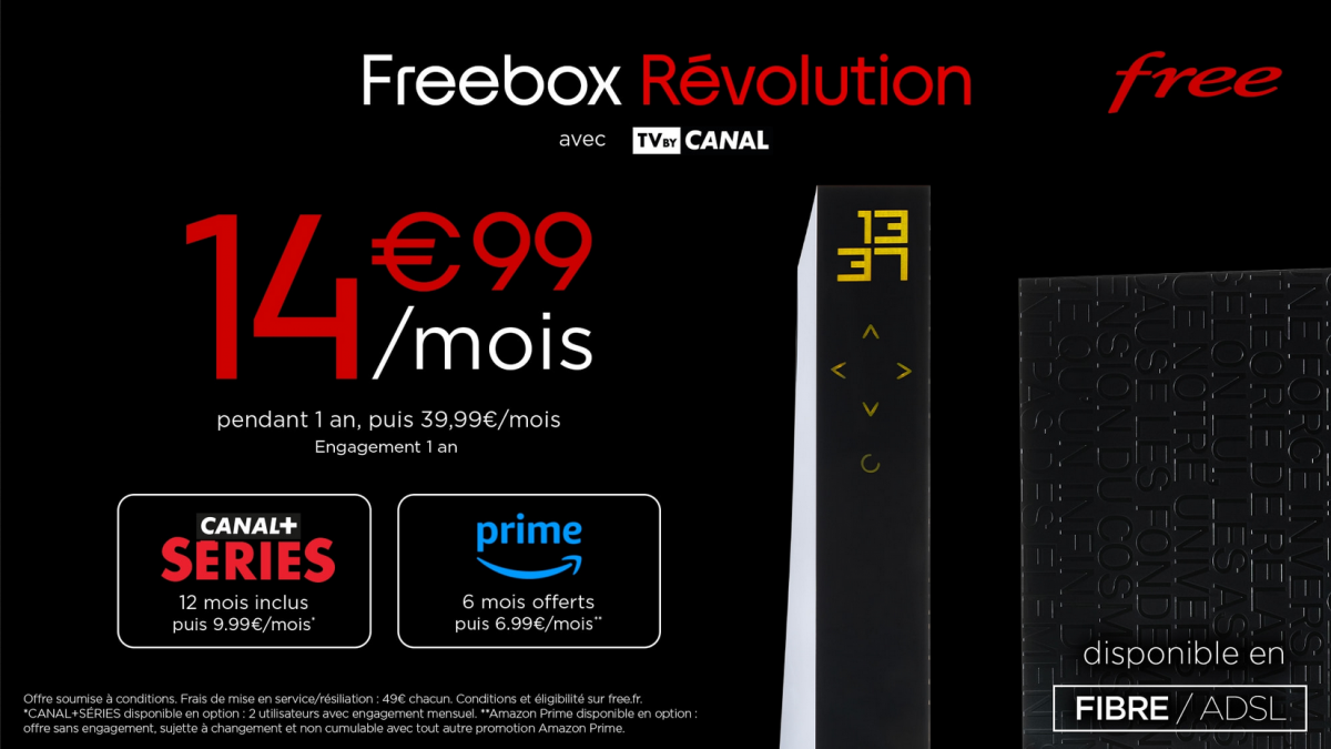 L’opérateur a lancé aujourd’hui à 19h son offre avec Freebox Révolution incluant 12 mois offert à Canal+ Séries et 6 mois à Amazon Prime sur Veepee.
