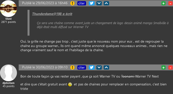 Disponible dans les offres Free, Orange, SFR, Bouygues Telecom, Molotov et incluse dans le Pass Warner sur Prime Video Channels, la chaine Toonami va changer de nom le 4 septembre, a annoncé le 28 juin sa maison-mère, le groupe Warner Bros. Discovery. Un changement d’identité qui laisse un goût amer chez certains alors que les nouvelles chaînes gratuites et généralistes sont moins fréquentes.
