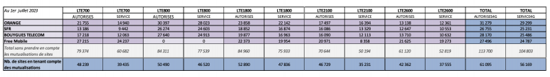 - Orange (29 299 sites, +71 en juin 2023) ;
