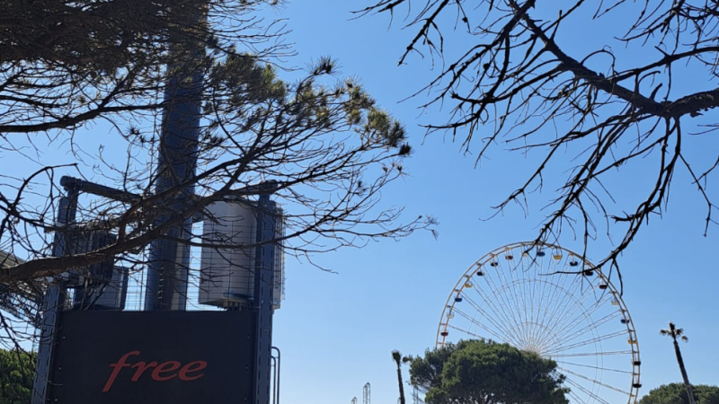 Alors que de 100 000 festivaliers sont attendus pour Les Déferlantes qui se tiennent du 6 au 9 juillet à Port-Barcarès (66) en bord de mer avec plus de 50 artistes sur 4 scènes, le compte twitter officiel Free_1337, annonce avoir installé un pylône provisoire de 20m, alimenté par une fibre optique de 10Gb/s afin de profiter pleinement de la 3G, 4G et 5G.