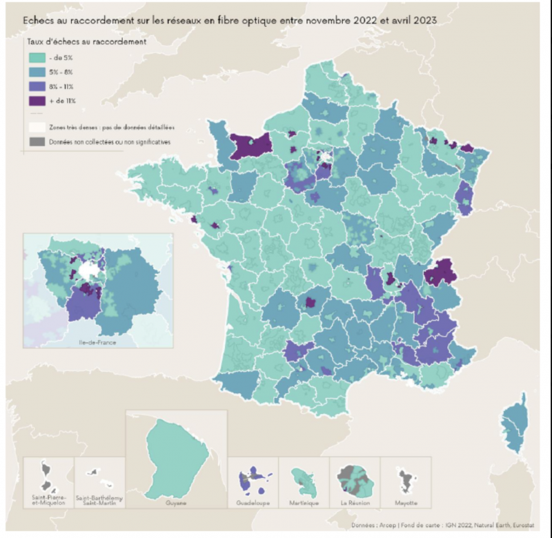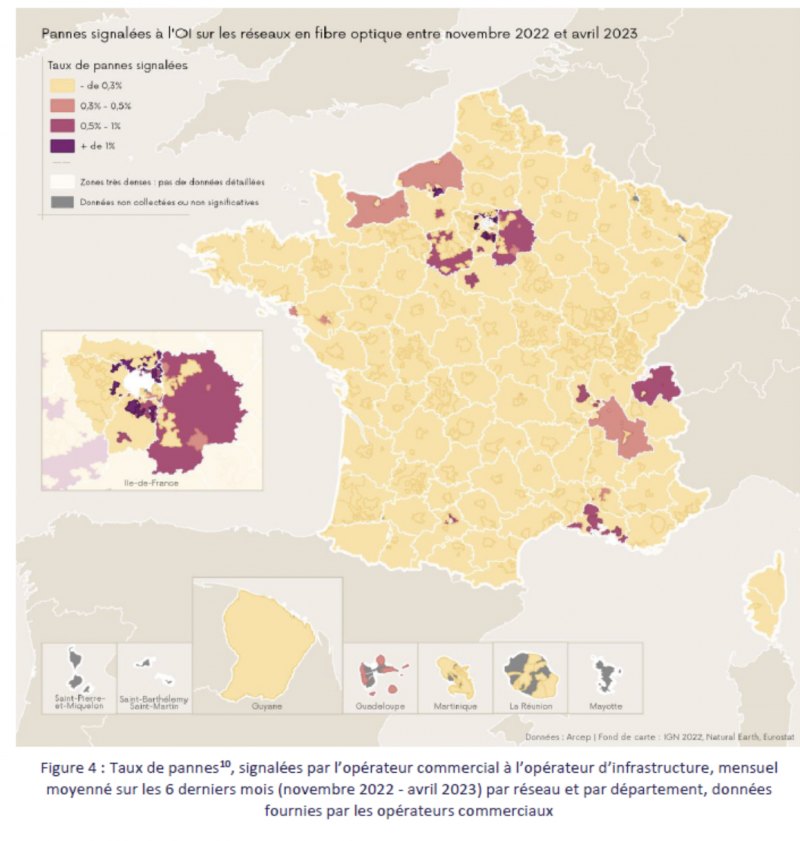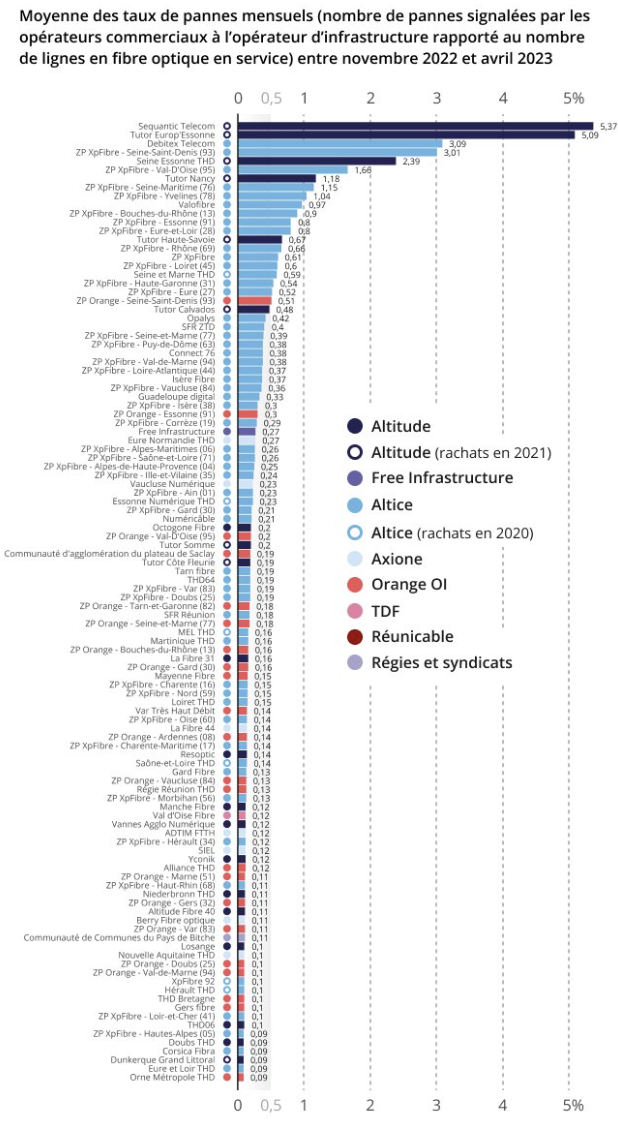 Si les opérateurs estiment que les réseaux impactés sont minoritaires, l’Arcep préfère se baser sur ses propres calculs. En France, le taux moyen de panne est de 0,12 % sur le parc de lignes FTTH. Chez certains telcos, les chiffres explosent par endroits, de 10 à 50 fois supérieur.