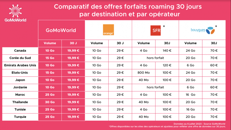 GoMoWorld face aux forfaits roaming 30 jours d’Orange, SFR et Bouygues Telecom