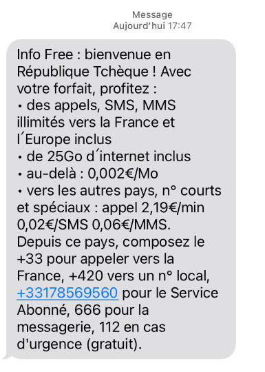 Vous le savez certainement, quand vous arrivez dans un nouveau pays, Free Mobile vous envoie un message pour vous indiquer les conditions tarifaires du pays. Ce dernier vient d’évoluer.