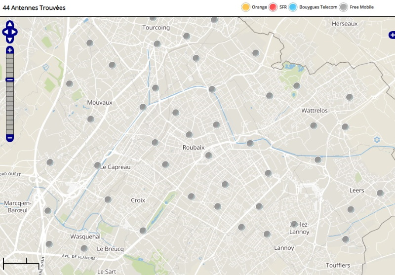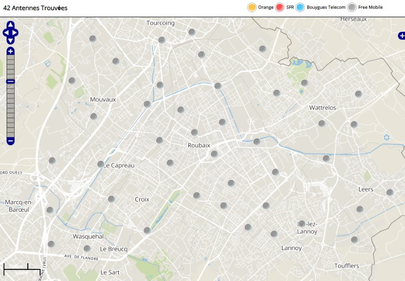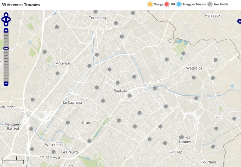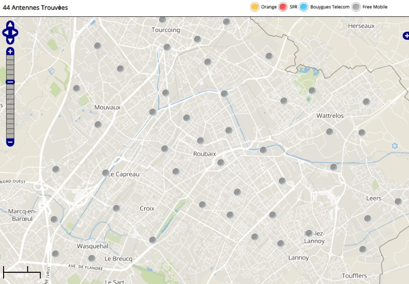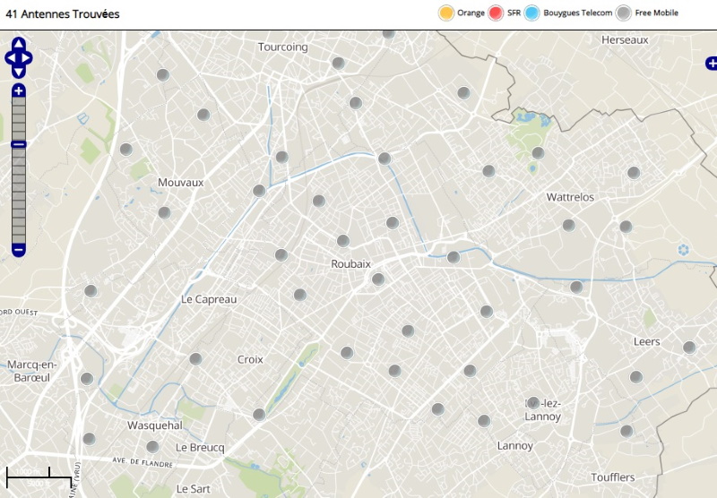 Découvrez la répartition des antennes mobiles Free 3G/4G sur Roubaix dans le Nord