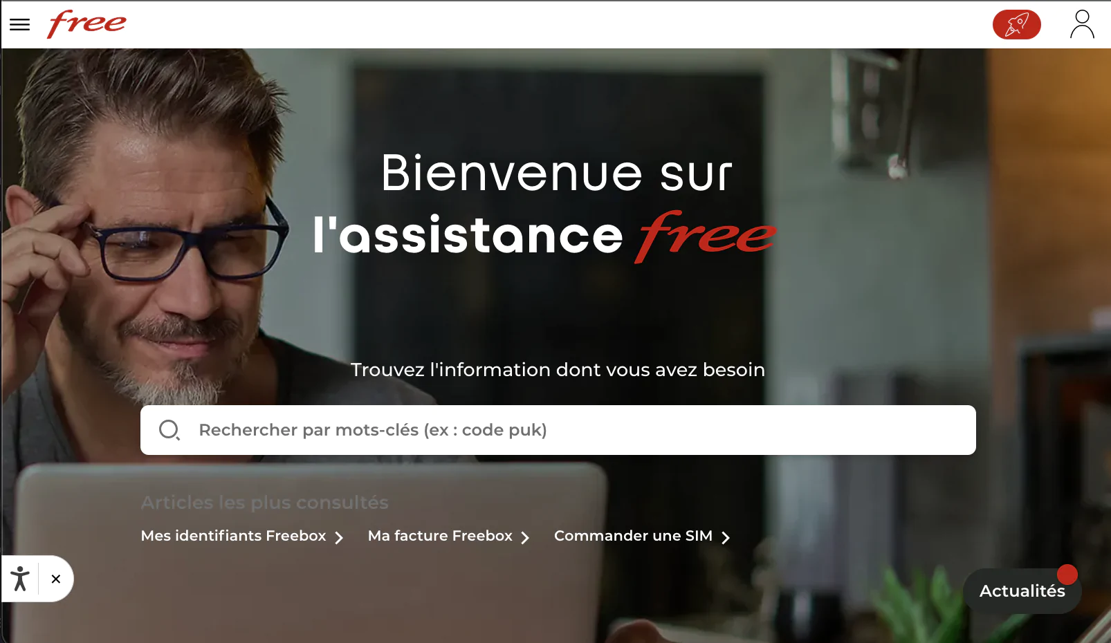 Le site d’assistance Free permet de trouver une information recherchées sur les différentes offres Freebox et Free Mobile ainsi que les problèmes les plus souvent rencontrés. Une aide est aussi proposée pour gérer son abonnement. Vous pouvez choisir une de ces rubriques, ou faire directement une recherche via le champs idoine.