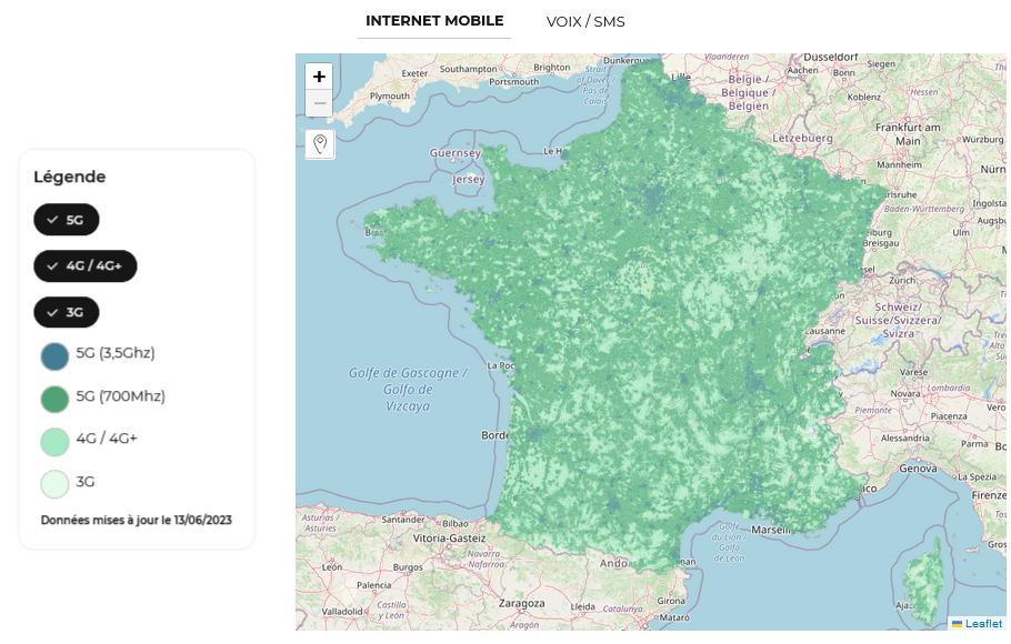 Avant de passer chez un nouvel opérateur, il est important de savoir si vous aurez du réseau chez vous ou sur votre lieu de travail. Pour cela, Free propose une carte de couverture mobile présentant la couverture 5G, 4G/4G+ et 3G. Elle vient d’être mise à jour et présente désormais l’état du réseau mobile au 13 juin 2023.