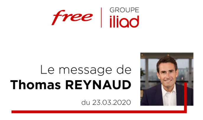 Depuis la semaine dernière nous vous tenons informés de la façon dont Free et tout le Groupe Iliad s’organise afin de diminuer les risques pour les salariés tout en assurant la continuité du service. Aujourd’hui, Thomas Reynaud, le Directeur Général d’Iliad, a envoyé une nouvelle lettre à tous les collaborateurs du Groupe, intitulée “Vos idées pour aider Free et le pays”. Au delà des remerciements aux équipes de l’opérateur, il annonce la mise en place d’une “boîte à idée solidaire”, sous la forme d’une adresse mail à laquelle tous les salariés peuvent faire leurs proposions pour améliorer le service ou la sécurité. Nous vous proposons cette lettre en intégralité (nous avons volontairement masqué l’adresse mail afin qu’elle ne soit pas spammée)