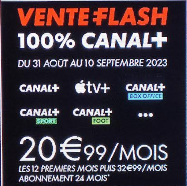 Pour cette rentrée, Canal+ vient de lancer une vente flash disponible sur la Freebox. Disponible du 31 août au 10 septembre, cette offre 100% Canal+ propose l’intégralité de ses 10 chaînes à savoir Canal+, Canal+ Sport, Foot, Sport 360, Cinéma, Grand Ecran, Docs, Kids Canal+ Séries ainsi que la nouvelle chaîne Canal+ Box Office disponible depuis aujourd’hui sur la Freebox. Cette offre intègre également les contenus de Apple TV+.