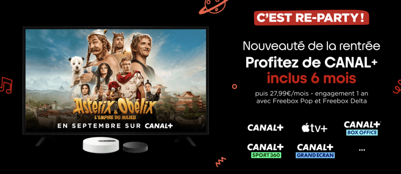 Afin de booster ses recrutements, Free lance une offre spéciale Canal+ 6 mois inclus à destination des nouveaux abonnés Freebox Pop et Delta pour leur faire bénéficier de tous les programmes cinéma, sport et séries de la filiale de Vivendi. Celle-ci comprend l’accès à 8 chaînes Canal+ dont la chaîne cryptée et Canal+ Box Office lancée en septembre, mais aussi au catalogue de droits sportifs (une grande affiche d’UEFA Champions League, une affiche de Ligue 1 Uber Eats, le meilleur de la Premier League et du TOP 14, 100% des Grands Prix de Formule 1 et 100% de la MotoGP…) ou encore à Apple TV+.