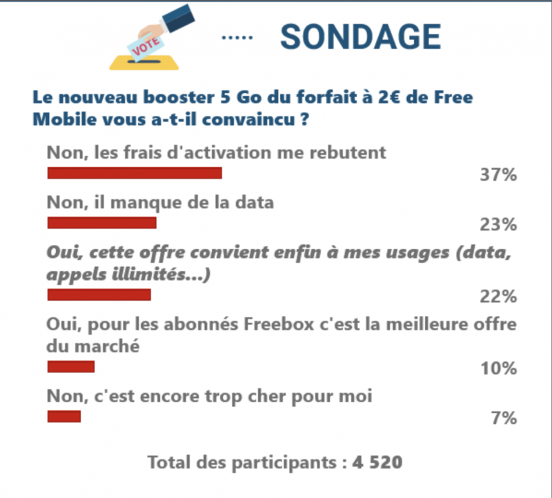 67% des participants à notre sondage de l’été ne sont pas convaincus par le booster 5Go à 2,99€ proposés aux abonnés au forfait 2€ de Free Mobile.
