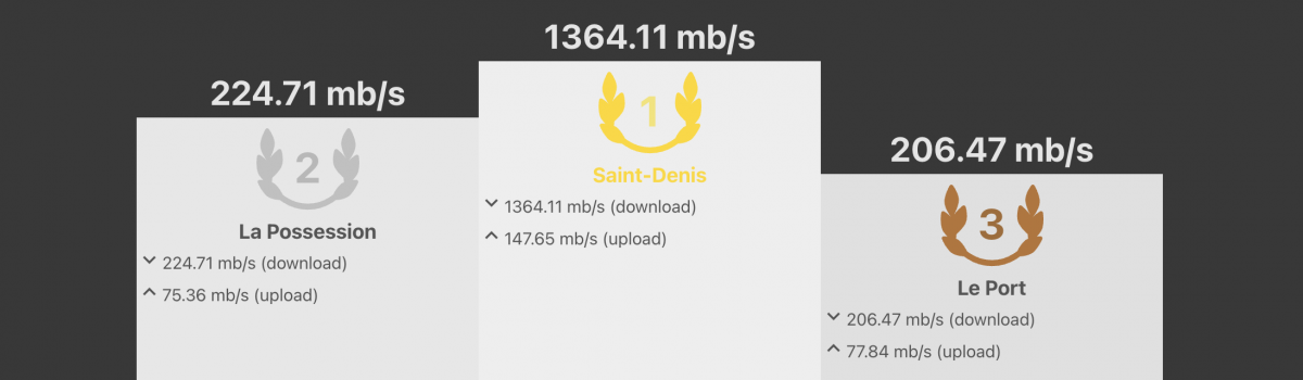 Pour rappel, Univers Freebox propose une rubrique “records” qui permet de découvrir les meilleures performances enregistrées par les utilisateurs de l’application RNC Mobile. Vous pouvez consulter les records pour chaque département ou région, comme ceux de La Réunion, avec des informations sur les vitesses de téléchargement et d’envoi, ainsi que les villes où ces performances ont été mesurées.