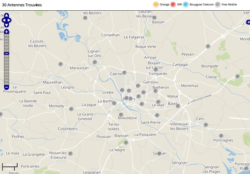 Découvrez la répartition des antennes mobiles Free 3G/4G sur Béziers dans l’Hérault