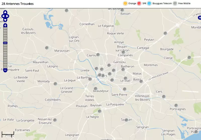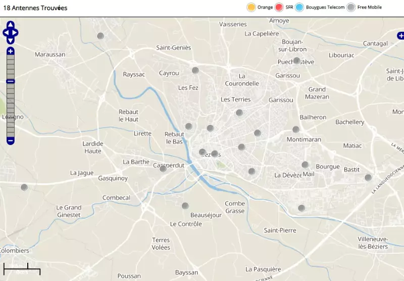 Free a également implanté 15 antennes mobiles 3G dans la ville de Béziers (antennes non-actives incluses).