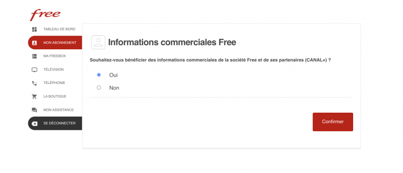 Pour les clients Freebox, il suffit de se rendre dans la rubrique “Mon Abonnement”, puis de cliquer sur “Bénéficier des infos commerciales de Free” dans la catégorie ” Mes informations personnelles” et de confirmer votre choix.
