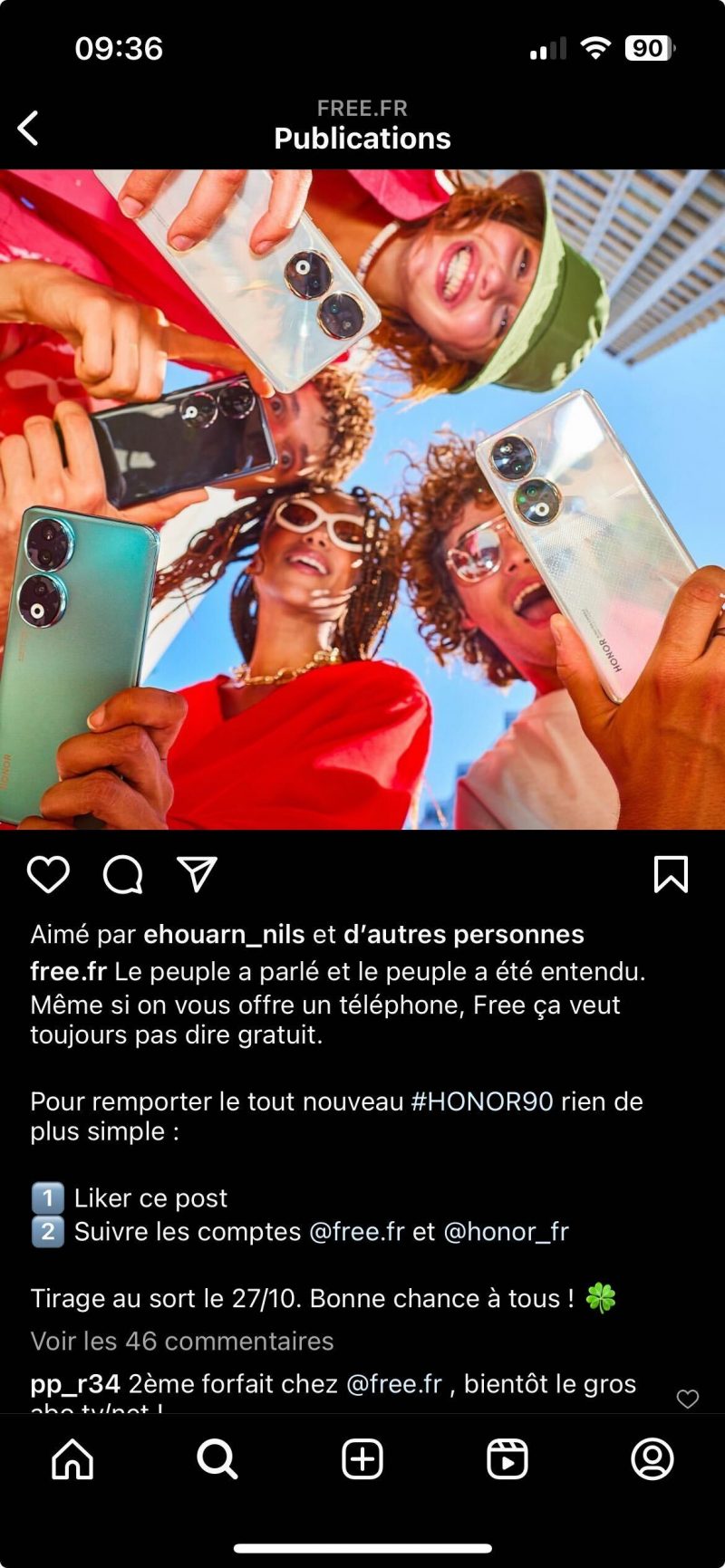 Free offre le nouveau Honor 90 sur Instagram via un nouveau concours et s’en amuse.