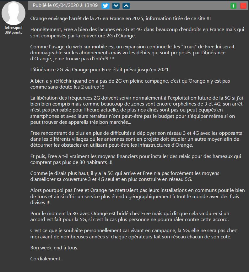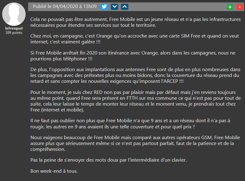 En effet, dans certaines zones, des abonnés Free Mobile n’ont pas d’autre choix que de se raccrocher au réseau Orange. Comme l’explique lefresquel, concluant avec un message de paix.