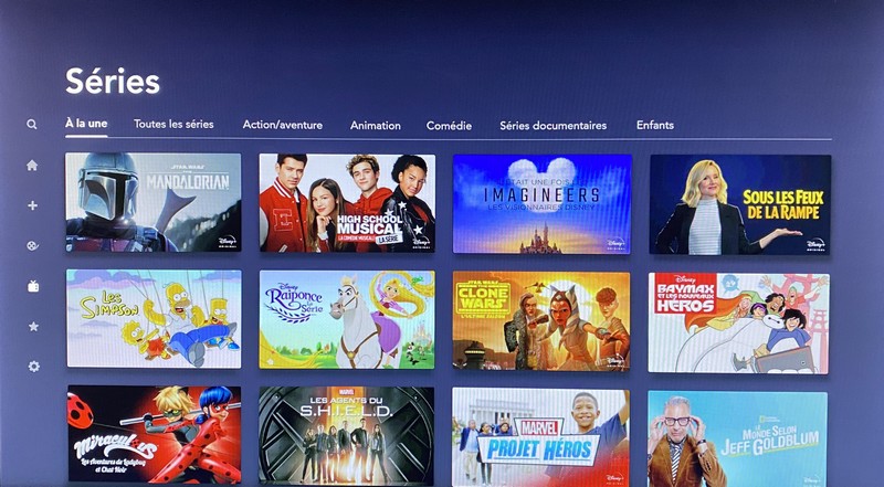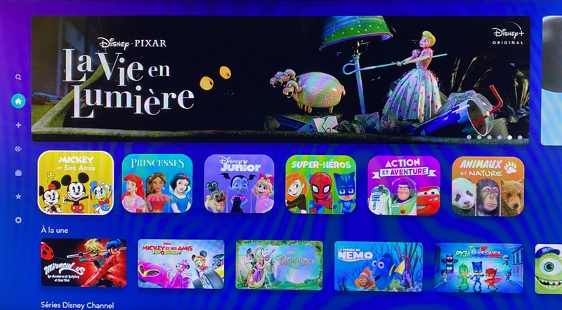 Notez que la barre latérale à gauche permettra d’accéder directement aux films, aux séries et contenus originaux de Disney. Elle apparaîtra de manière réduite afin de ne pas prendre trop de place à l’écran lorsqu’elle n’est pas utilisée. Bien vu.
