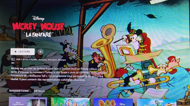 Mais on peut également naviguer dans les recommandations de manière générale. Il y a par exemple les listes “Films nostalgiques”, “Comédies Musicales”, “Comédies”, “Mickey Mouse à travers le temps” et “Documentaires”. La grande diversité des recommandations permettra de trouver son bonheur.