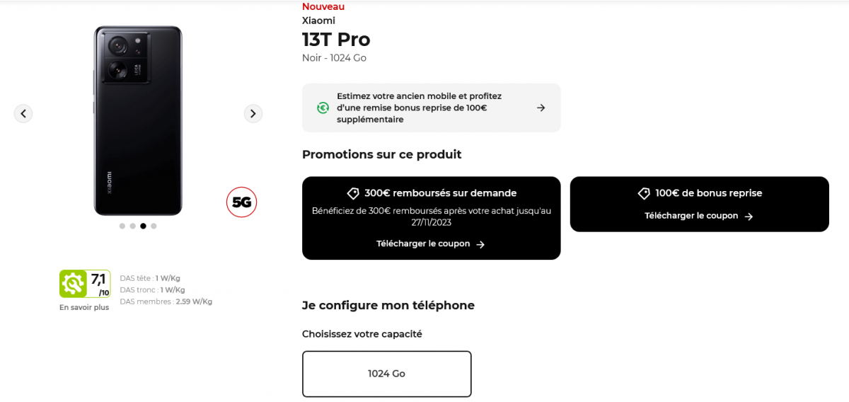 Si vous aviez besoin de changer de smartphone pour rester au top en termes de puissance, vous pouvez par exemple profiter de 160€ remboursés sur un Samsung Galaxy S23, proposé à 959€ au comptant. L’offre est valable tant pour un achat via Free Flex qu’au comptant. Si les derniers modèles de Xiaomi vous tentent davantage, le Xiaomi 13T, d’une valeur de 999€ bénéficie d’une offre de remboursement de 300€ à laquelle s’ajoute une offre bonus reprise de 100€ si vous rendez un ancien appareil lors de l’achat du modèle.