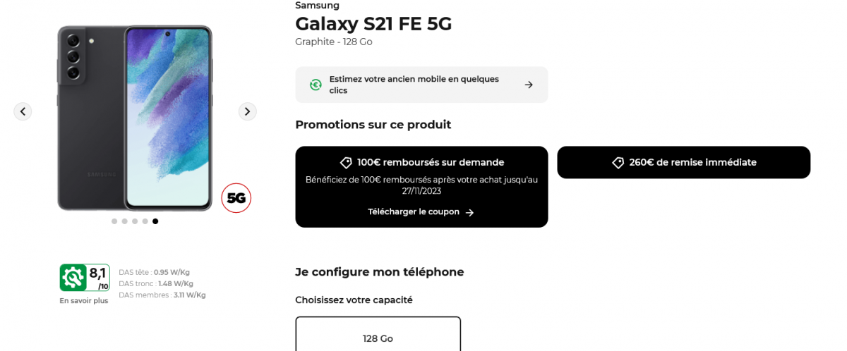 Pour ceux ne désirant pas forcément du haut de gamme mais souhaitant tout de même bénéficier d’un appareil assez performant ils pourront par exemple se tourner vers le Honor 90, commercialisé à 499€ mais qui bénéficie d’une offre de remboursement sous forme d’avoir sur facture de votre abonnement mobile, à hauteur de 100€. Pour une économie plus immédiate, vous pourrez vous tourner vers le Oppo Find X5 Lite, d’une valeur initiale de 499€ qui bénéficie d’une remise de 90€ et d’une ODR de 50€. La meilleure affaire du Black Free Day est la double promotion sur le Samsung Galaxy S21 FE 5G, qui bénéficie d’une remise immédiate de 260€ couplée à une offre de remboursement de 100€, pour un smartphone d’une valeur initiale de 759€.