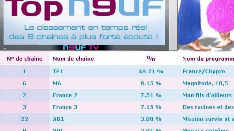 chaînes de la TNT, l’audience du 9 inclue donc ces chaînes.