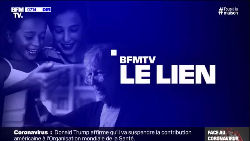 “LE LIEN” c’est le nom du nouveau rendez-vous que BFMTV propose aux personnes ayant des proches isolés ou éloignés sans accès a des moyens de télécommunication de garder le contact avec ces derniers au travers de message vidéos diffusés. BFMTV invite toutes les personnes voulant faire passer un message, à les envoyer soit par email sur l’adresse suivante : bfmtvetvous@bfmtv.fr ou directement sur la page en ligne dédiée accessible ICI.