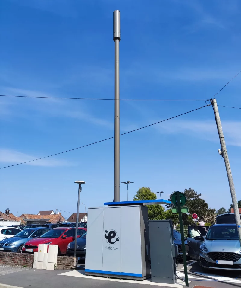 Des antennes radio fleurissent sur des bornes de recharge du réseau Stations-e. Une solution pratique pour les opérateurs dans le déploiement de leurs réseaux mobiles.