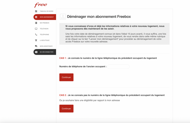“Une fois votre date de déménagement connue et dans l’idéal 15 jours avant, il vous suffira, une fois saisi les informations relatives à votre nouveau logement, de vous rendre dans cette même rubrique et de cliquer sur le lien “Lancer mon déménagement” pour procéder au déménagement de votre accès Freebox sur votre nouvelle adresse”, explique Free.