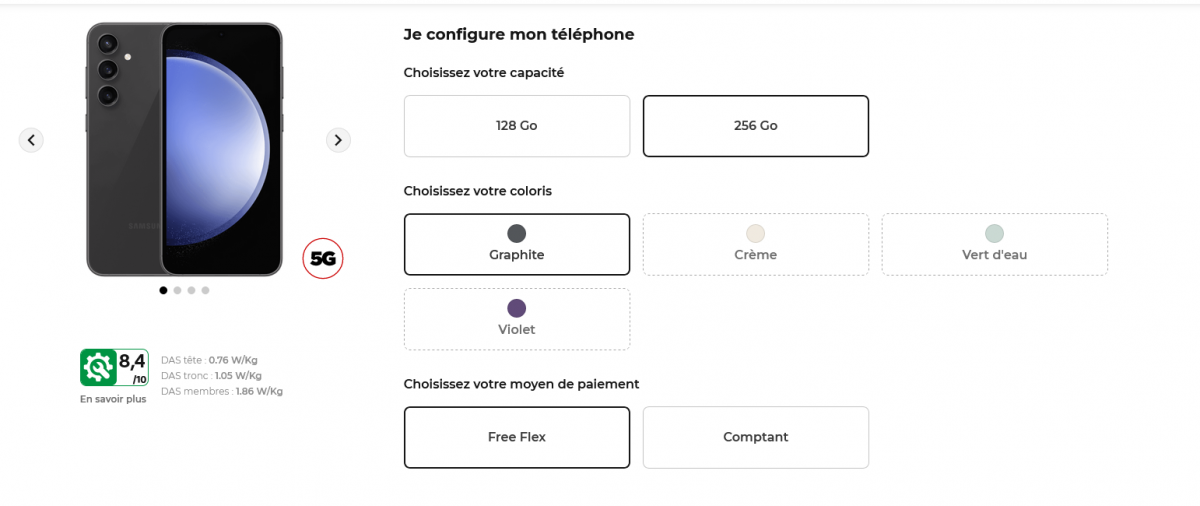 Il est évidemment possible d’acquérir ce smartphone via Free Flex, en payant 119€ à la commande pour le modèle 128Go ou 179€ pour davantage de stockage puis 19.99€/mois si vous n’êtes pas abonné Free Mobile. En étant connecté avec votre compte Free Mobile, la commande passera à 79€ pour 128 Go avec des mensualités de 21.99€/mois, contre 109€ puis 22.99€/mois pour le modèle proposant 256 Go.