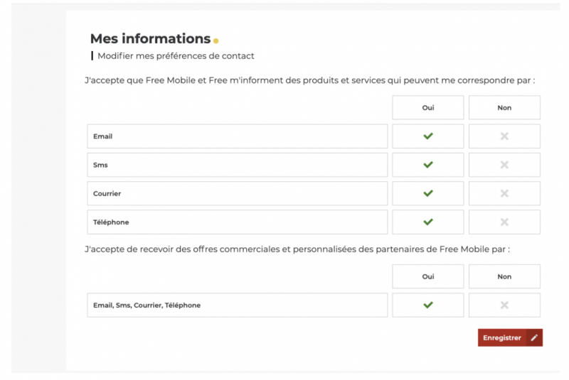Gestion des informations commerciales sur l’espace abonné Free Mobile.