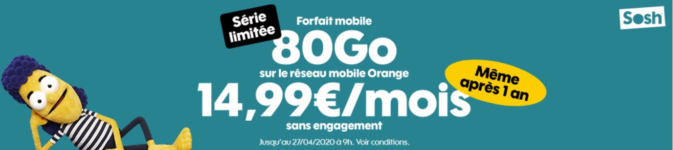 A l’heure où Bouygues et RED by SFR propose des forfaits avec plus de 50 Go pour moins de 15€, Sosh emboîte le pas.