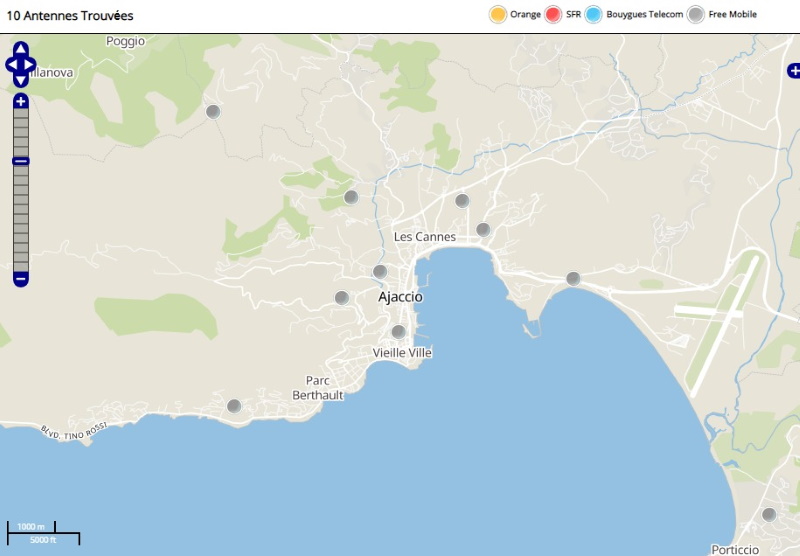Free a également implanté 8 antennes mobiles 3G dans la ville de Ajaccio (antennes non-actives incluses).