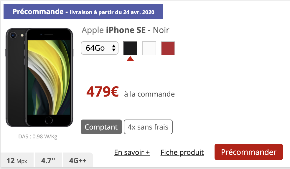 Côté prix, la version 64 Go est proposée à 479 euros en achat comptant ou 122€ à la commande puis 3 fois 119€ en 4 fois sans frais.