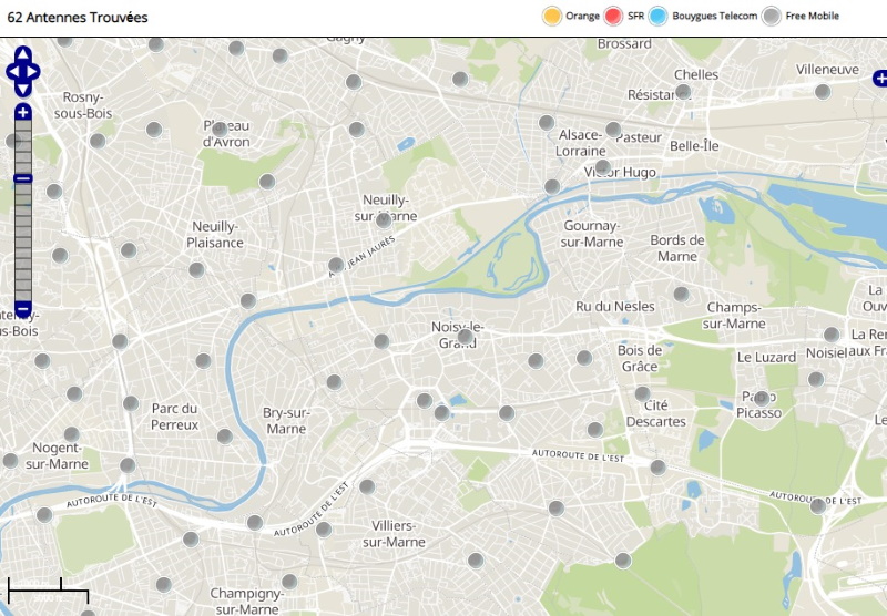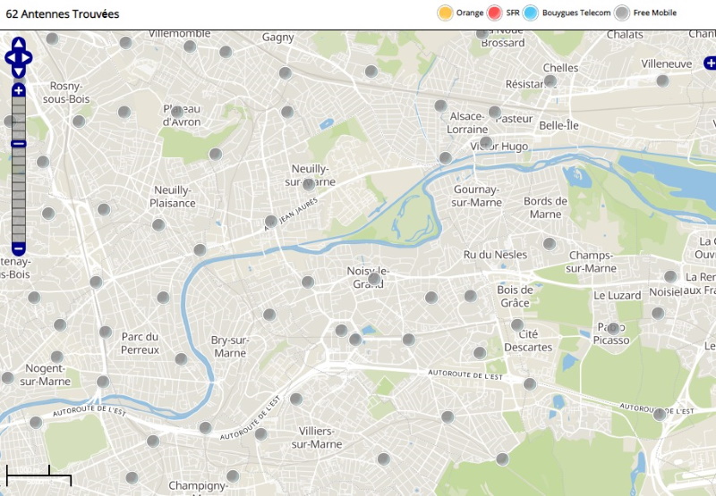 Découvrez la répartition des antennes mobiles Free 3G/4G sur Noisy-le-Grand en Seine-Saint-Denis