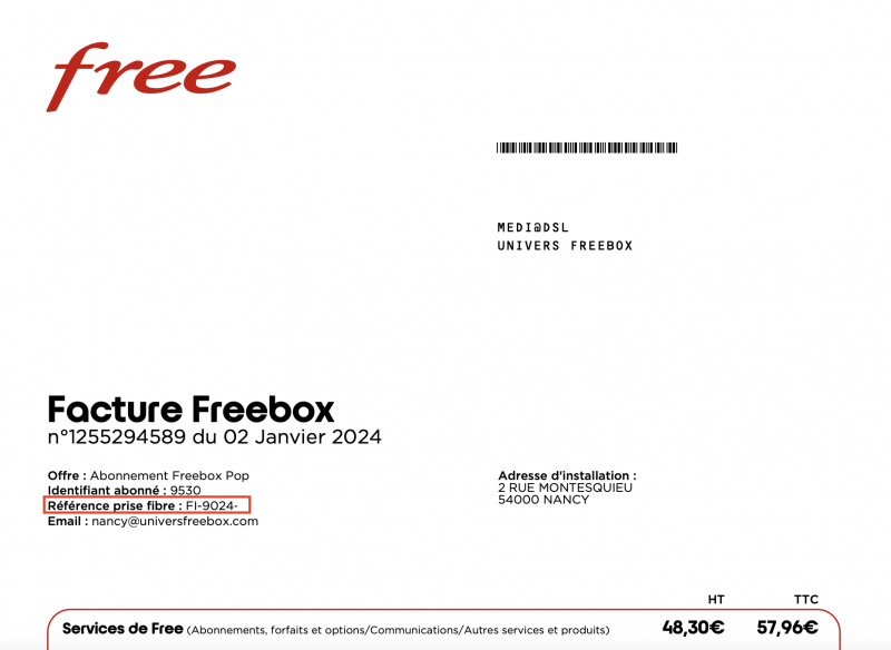D’abord sur les espaces clients, chose faite depuis le 1er juillet 2023, puis directement sur les factures à compter du 31 décembre 2023. Selon les constatations de Busyspider, confirmées par Univers Freebox, il est désormais fait mention de la référence prise fibre sur les factures Freebox du mois de janvier.