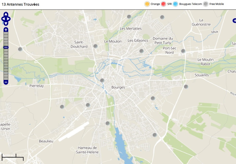 Free a également implanté 10 antennes mobiles 3G dans la ville de Bourges (antennes non-actives incluses).