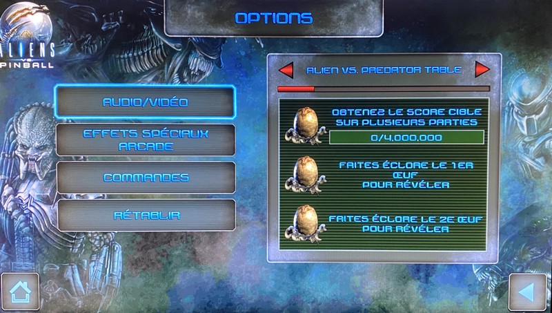 D’emblée, Aliens vs Pinball vous donne accès à un seul plateau de jeu. Les deux autres doivent être débloqués.